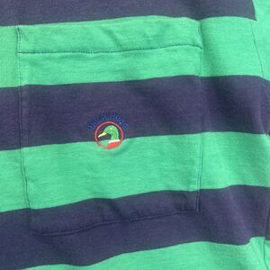 Duck Head M Green Blue Striped Pocket T Vintage 90s Single Stitch