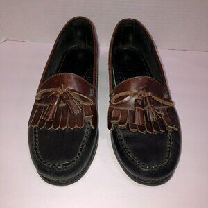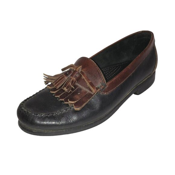 Duck Head Mens Size 9.5 M Black Brown All Leather Tassel Kiltie Loafers Shoes