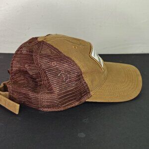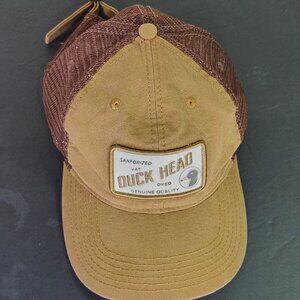 Duck Head Mesh Hat Cap Strap Back Brown Sanforized Patch Logo Trucker Mens