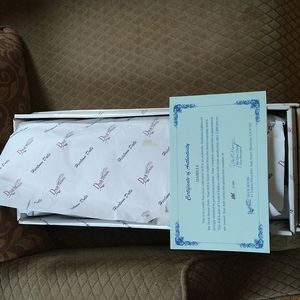 This adorable porcelain doll has never been unwrapped. She is # 0302 of 5000. The doll is mint the box is not.