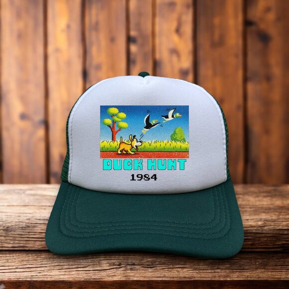 Duck Hunt 1984 Mens Trucker Hat Green Snapback Retro Video Game Baseball Cap