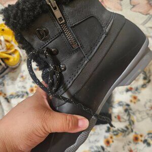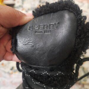 All black fuzzy collar Sperry duck boots! Get your feet ready for cold and rain with these cutie boots, perfect with some thick socks in Fall and Winter.