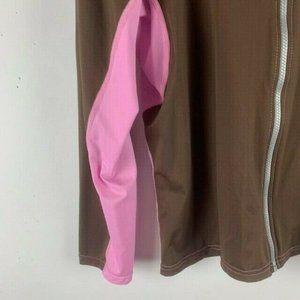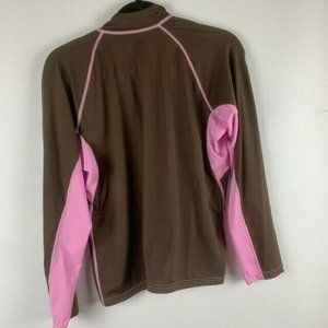 DuckSkinz Womans Athletic Top Size Small Brown Pink Front Zip Lightweight