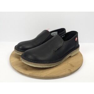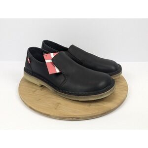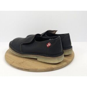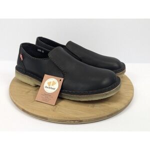 The Duckfeet Falster Shoes in black for men size 9.5 features a round toe shape and slip-on closure. Made with leather and crepe outsole material, these loafers are designed for comfort and performance with features like slip resistance and water resistance. Perfect for various occasions such as travel, activewear, casual outings, and workwear, these limited edition shoes are accented with a logo and are ideal for all seasons. With a standard shoe width and leather lining and insole, these Duckfeet loafers are a stylish and versatile choice for outdoor activities.