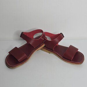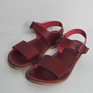 Duckfeet Lokken Womens Leather Red Flat Sandals EU 38 US 7.5 -8 Slingback Danish Shoes