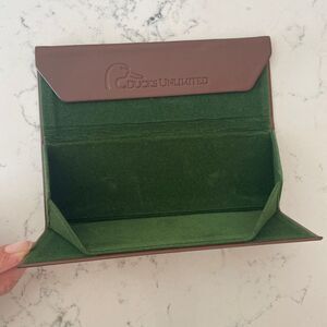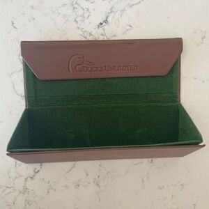 Ducks Unlimited Eye Glass Case Triangular Leather Magnetic Flap Brown Sunglasses. Great used condition. Ask questions before purchase.