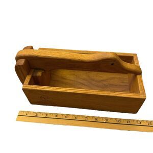 The Ducks Unlimited Wooden Duck Nutcracker is a vintage collectible perfect for adding a touch of cottage core charm to your holiday decor. Handmade from wood in a brown color, this medium-sized nutcracker features intricate detailing of ducks and chicks, making it a unique addition to any collection. With its original design and vintage appeal, this nutcracker from Ducks Unlimited is sure to bring a touch of holiday spirit to any home during the festive season.