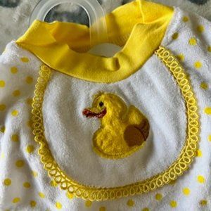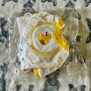 Cozy pajamas with bib and embroidery details. 80% cotton, 20% polyester. Yellow.