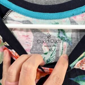 Duddl Duds Cotton Core Raglan Sleep Shirt Navy Tropic Leaf Size X-Small