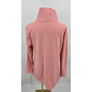 This cozy Cobble Hill Turtleneck from Dudley Stephens features their signature soft fleece in a cheerful Island Coral hue. The structured funnel neck and longer tunic length create a flattering, elevated silhouette. Color match? Spot on for Autumn tones like Coral and Apricot and Spring shades like Shell Pink. A stylish staple for year-round wear.