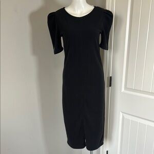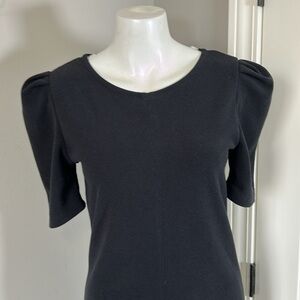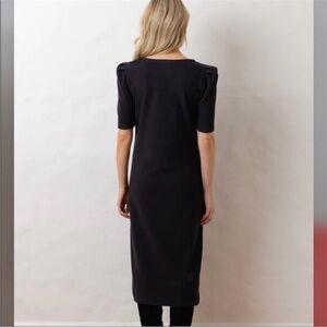 Dudley Stephens Duncan Dress Terry Black Recycled Fleece MIDI Puff Sleeve Sz XS