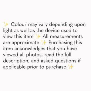 ✨ Colour may vary depending upon light as well as the device used to view this item ✨ All measurements are approximate ✨ Purchasing this item acknowledges that you have viewed all photos, read the full description, and asked questions if applicable prior to purchase ✨