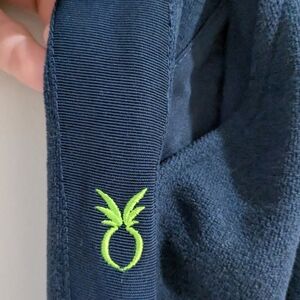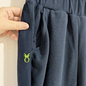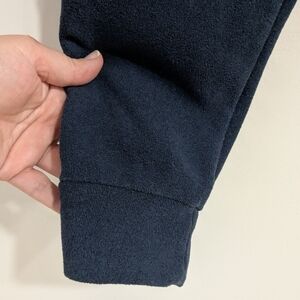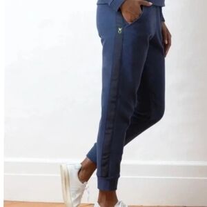 Dudley Stephens Jay Joggers Pants in Terry/Navy, Medium: Keeping it casual or kicking it at home, these sporty joggers are down for whatever you are. Done in cloud-soft fleece, they have an easy stretch waistband, tapered legs (note the pretty grosgrain racing stripe and embroidered neon logo), and convenient hip pockets. Team it with the Park Slope turtleneck for head-to-toe comfort.