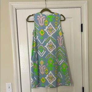 Vibrant Dudley Stephen’s sleeveless dress with a bold pattern. Features blue, pink, yellow, and green colors. Has pockets!! Never worn.