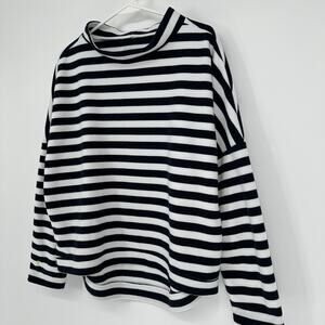 Dudley Stephens Sweater Womens Medium Navy White Stripe Fleece Pullover Cozy Top