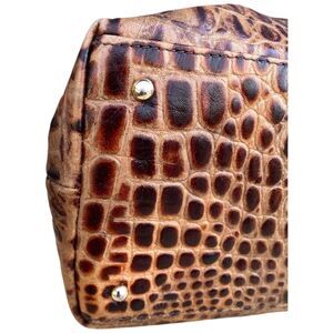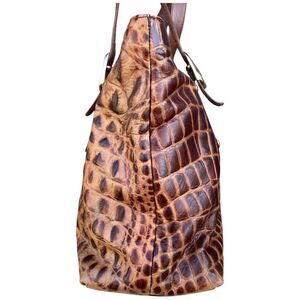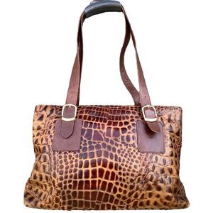Due Fratelli 2 Strap Brown Leather Tote Shoulder Bag Crocodile Embossed mob wife