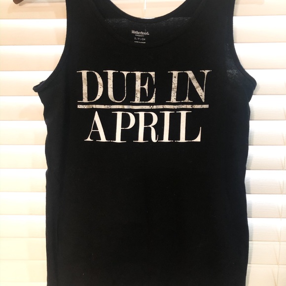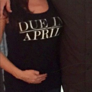 Motherhood black ribbed tank announcing your due month. Casual top that can be worn any day of the weak. Light seam undone at bottom of shirt. Easily stitched.