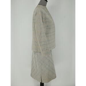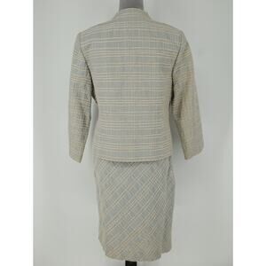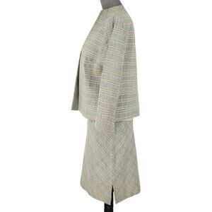 Due Per Due Skirt Suit Petites 12P Green Beige Plaid Silk Blend Lined Vintage