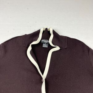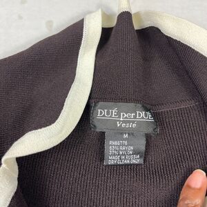 Due Per Due Veste Cardigan Sweater Brown Cream Contrast Trim Work Classic MEDIUM