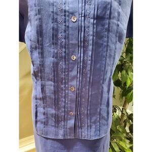 Due Per Due Women's Blue Linen Short Sleeve Shirt & Maxi Dress 2 Pc's Suit 14.