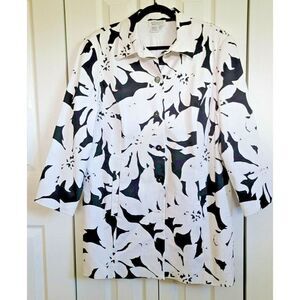 Due Per Due Women's White & Black Size 14W Lined Mid-Length Coat Heavy Pockets