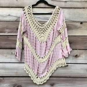Boutique Tie-Dyed loose fitting top. Size fits S/M. Drops down in the front and back to a V on the bottom. Very cute comfy top!!
