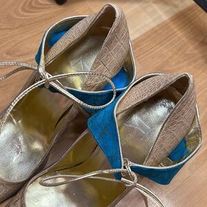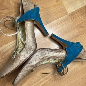 Excellent condition snakeskin and suede heels. Light signs of wear mostly on footbed and soles. 3.5” heel height. Womens EU 38.5 US 8.