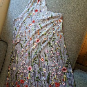 NWT - gray dress, floral print. No tag with fabric, but it's soft, like a cotton/Lycra blend. Machine wash, tumble dry.