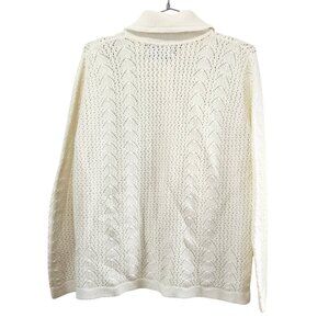 Duet Wintuk Knit Vintage Collared Button Up Ivory Cardigan Sweater VTG