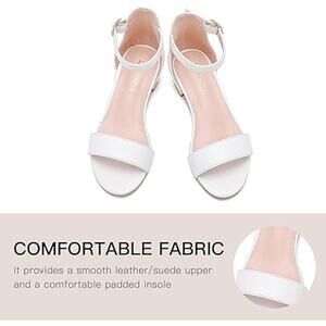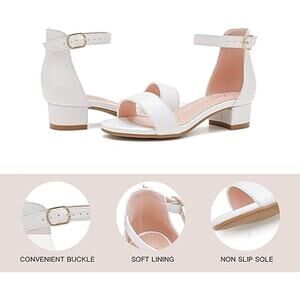 Dufannie Little Girls Size 12 White Open Toe Low Heel Ankle Strap Sandal Shoes