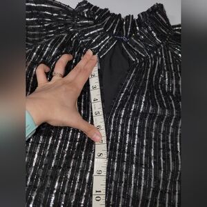 Duffield Lane Black Metallic Stripes Tiered Puff Sleeve Whimsygoth Holiday Dress