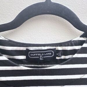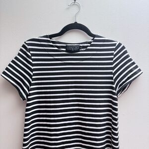 Duffield Lane Black White Stripe Preppy Shirt Sleeve T Shirt Dress Womens Small
