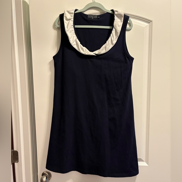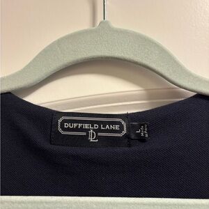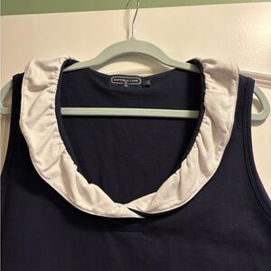 Duffield Lane Ruffle Dress size Large. Navy dress, sleeveless, has some stretch, not lined. Super cute!!!