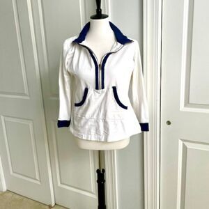 Duffield Lane White Blue Quarter Zip 3/4 Sleeves Stretchy Fabric Top XL