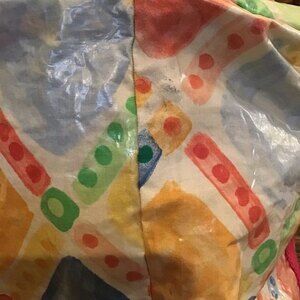 Excellent Condition, except small section on the end has lost a little bit of the shinny coating. ( about 7” long and 1/4” wide and less). There is a small tiny hole ( about pencil size that isn’t torn through)