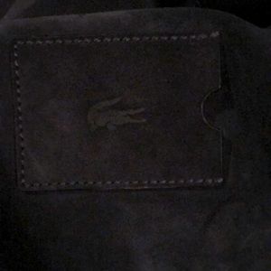 Navy blue suede duffle with sweatshirt lining with dust bag. Never been used!