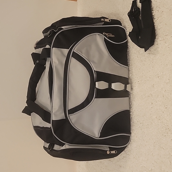 New unbranded duffle bag without tags. Comes with adjustable shoulder straps and matching toiletry bag.