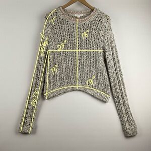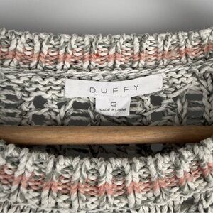 Duffy Women’s Small Open Stitch Cotton Sweater – Marled Gray/Coral