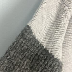 Beautiful monochromatic color blocked sweater with mixed knit patterns.