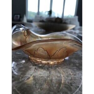 Dugan Marigold Iridescent Carnival Leaf Kays Napping Candy Dish. From my mothers collection. 6 L, 5 W, 2H.