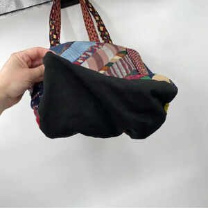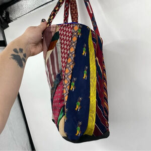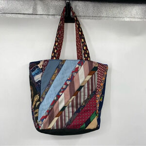 Dugdale Designs Quilted Tote Bag Womens OS Brown Mult Tie Handmade Patch Boho Hippie. Dual Top Handle Shoulder Bag. Lined.