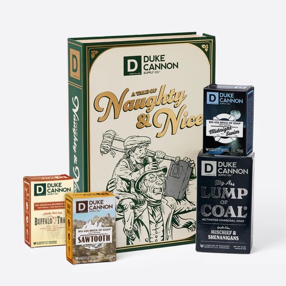 Duke Cannon Soap Tale of Naughty Nice Box 4 Pc Set Coal Sawtooth Midnight Swim