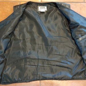 This is an awesome Duke Haband Vintage Patchwork Vest. Men's LARGE Leather Black Motorcycle Riding. Very nice condition with minimal wear. 2 front slit pockets. 1 inner slit pocket. Fully lined. Metal snap front. From a smoke-free, pet-free home.