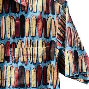 Capture the essence of laid-back island style with the Duke Kahanamoku Hawaiian Aloha shirt. This vibrant multicolor piece, featuring a lively surf board pattern, is a perfect pick for your next vacation or casual day out. The short-sleeve design and breathable blend of cotton and silk ensure comfort in warm weather, while the standard size small fits true to size for a relaxed fit. Attention to detail is evident with its classic button-up closure, and the shirt is tailored to suit the men's department. Whether you're hitting the waves or just enjoying the sunshine, this shirt embodies the Duke Kahanamoku legacy and brings a touch of Hawaiian paradise to your wardrobe.