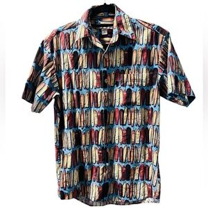 Duke Kahanamoku Silk Blend Hawaiian Aloha Shirt Size Small Surf Boards Vacation