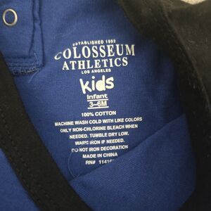 Please note - new with tag but there's a small hole near the neckline (please see picture). The Duke University Blue Devils Baby Romper & Hat Set in size 3-6 months is a stylish outfit featuring a blue coverall with long sleeves, making it perfect for your little one's wardrobe. The set includes a matching hat, making it easy to dress your baby in a comfortable and fashionable way. The design with the University theme adds a fun and sporty touch to the outfit, ideal for any little fan of the Duke Blue Devils. Made by Colosseum Kids, this 2-piece set is sure to be a hit with both parents and baby alike.