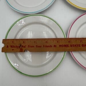 Duktig Ceramic Tea Plates Petit Fours Plates Set/4 Pink Yellow Blue Green Rims