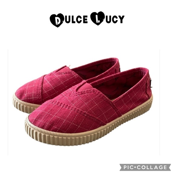 Dulce Lucy girls plaid red canvas slip on espadrilles shoes size 33 or 2