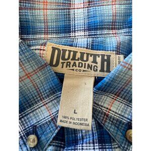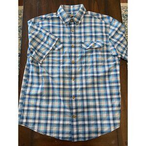 Duluth Blue Plaid Button Down Shirt Short Sleeve Pockets Classic Casual Large