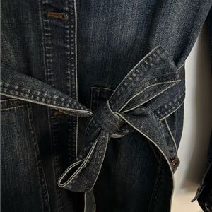 Stylish denim blue jacket perfect for any casual outing. Features a classic design with button closures and multiple pockets for convenience. Can wear with or without the belt.